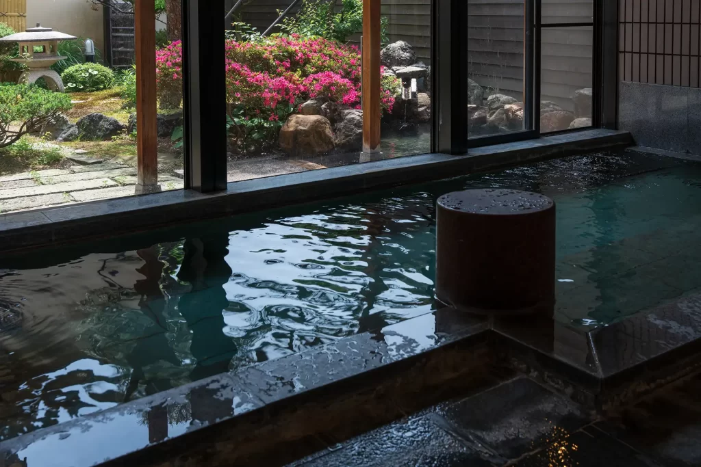 窓の向こうの景色と湯けむりが重なり合い、四季折々の風情が楽しめるお風呂は、胡蝶でしか味わえない珠玉の時間。